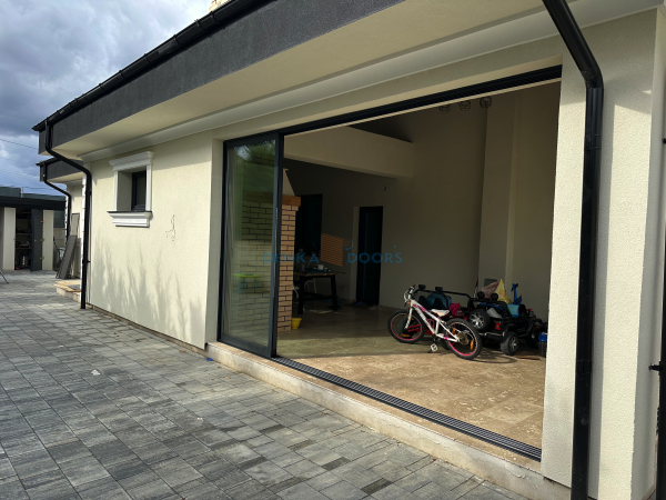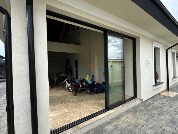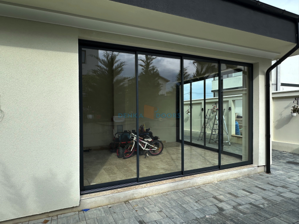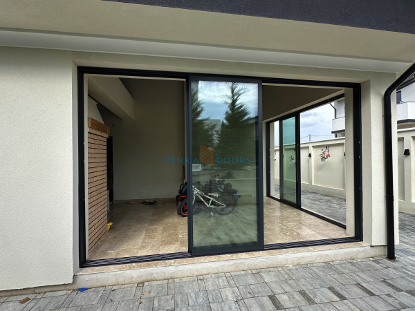 Sistemul Denka Pro este compus din doua foi de sticla culisanta cu o grosime totala de 22 mm, asigurand izolare si siguranta. Folosim ramǎ din aluminiu pentru fiecare panou, garantand rezistenta in timp si protectie impotriva socurilor.