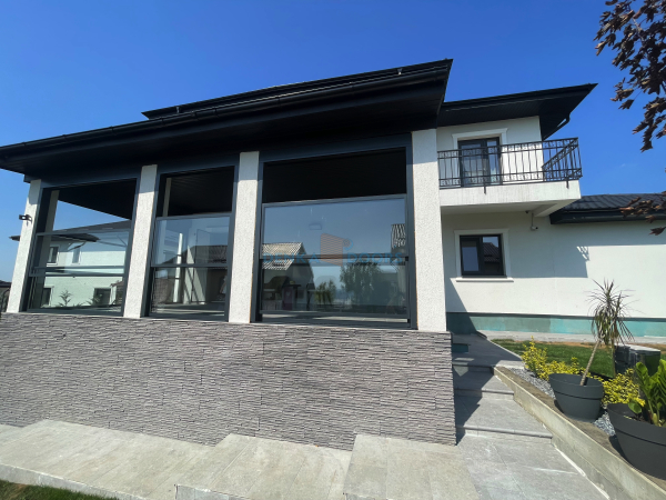 Inchidere terasa cu sticla culisanta si sticla automata verticala